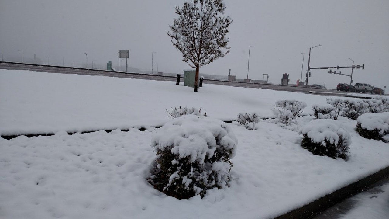 Snow coats an area of Monument, Colorado, on April 29, 2016.