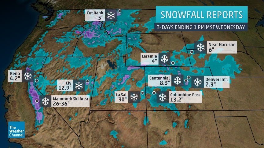 Prior to bringing snow and strong winds to the High Plains, the same storm system dumped snow on many western states Monday into early Wednesday.