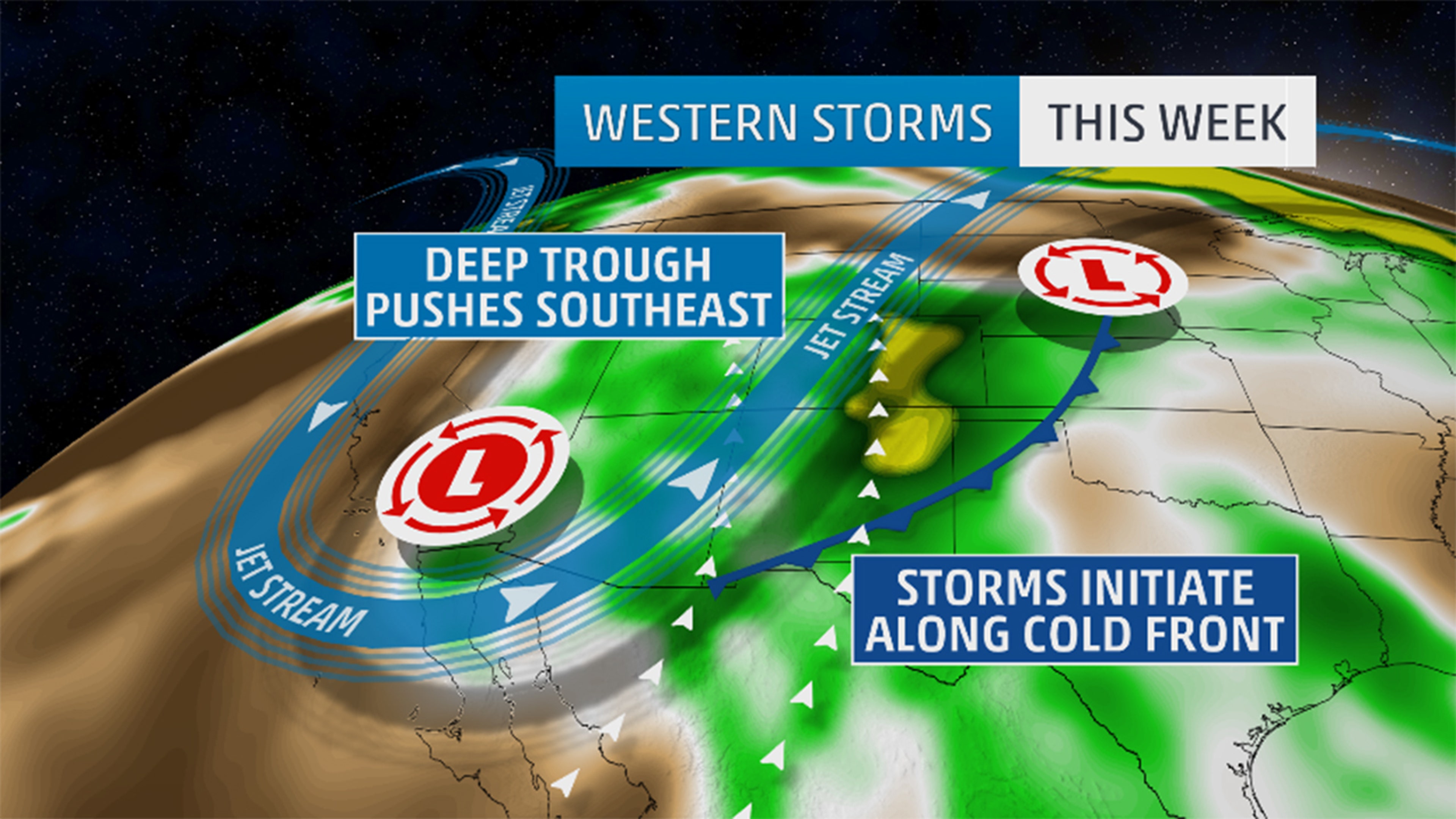 Through this week, what is left of the disturbance is forecast to move east through the Plains, finally departing the Southwest after impacting the area for at least two full weeks.