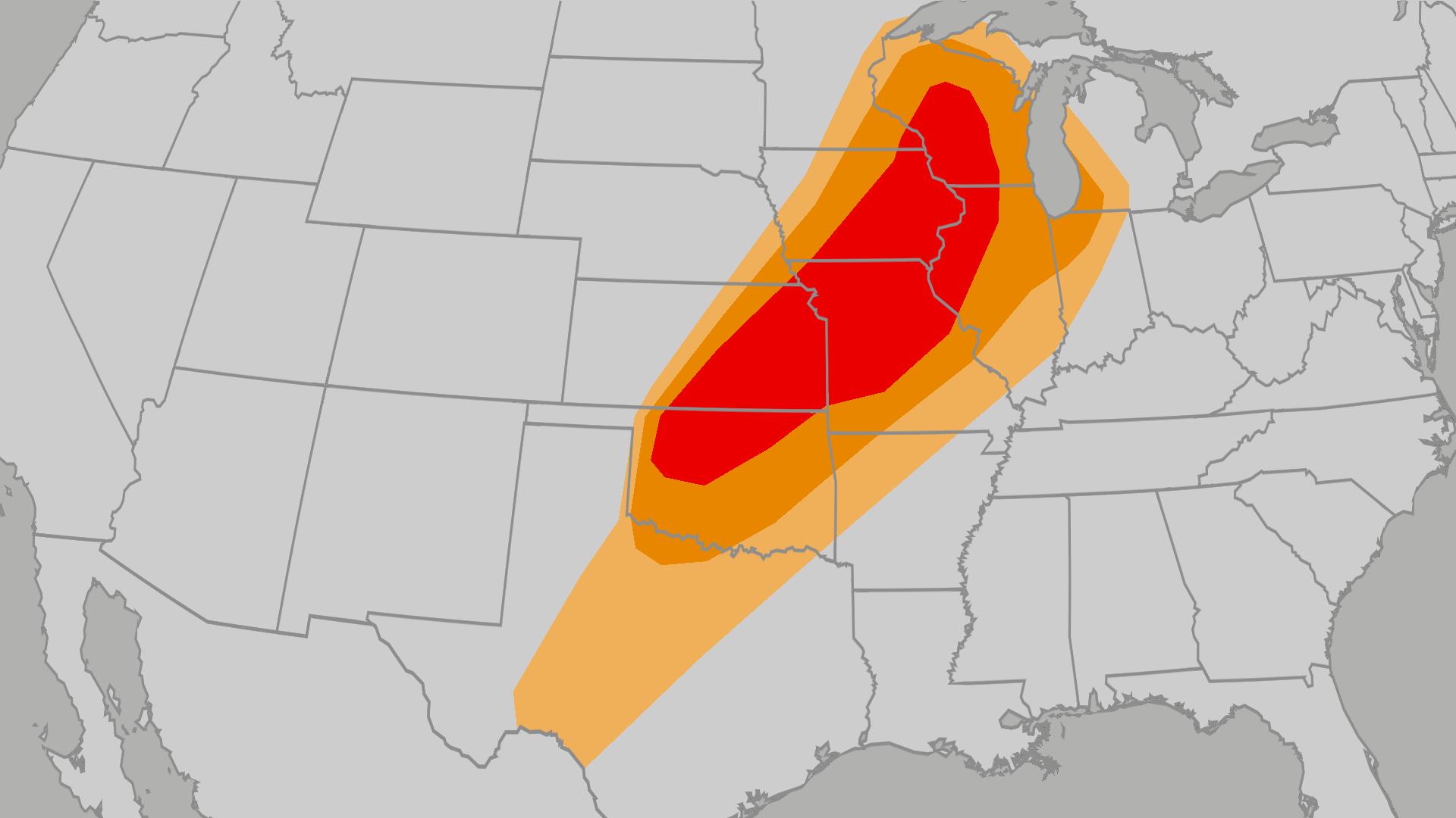 Another round of storms is possible from Texas to Wisconsin Friday, where the threat of strong tornadoes is possible. The threat could also bring large hail, gusty winds and heavy rainfall across areas already slammed by severe weather earlier this week. Meteorologist Rob Shackelford breaks down the timing.