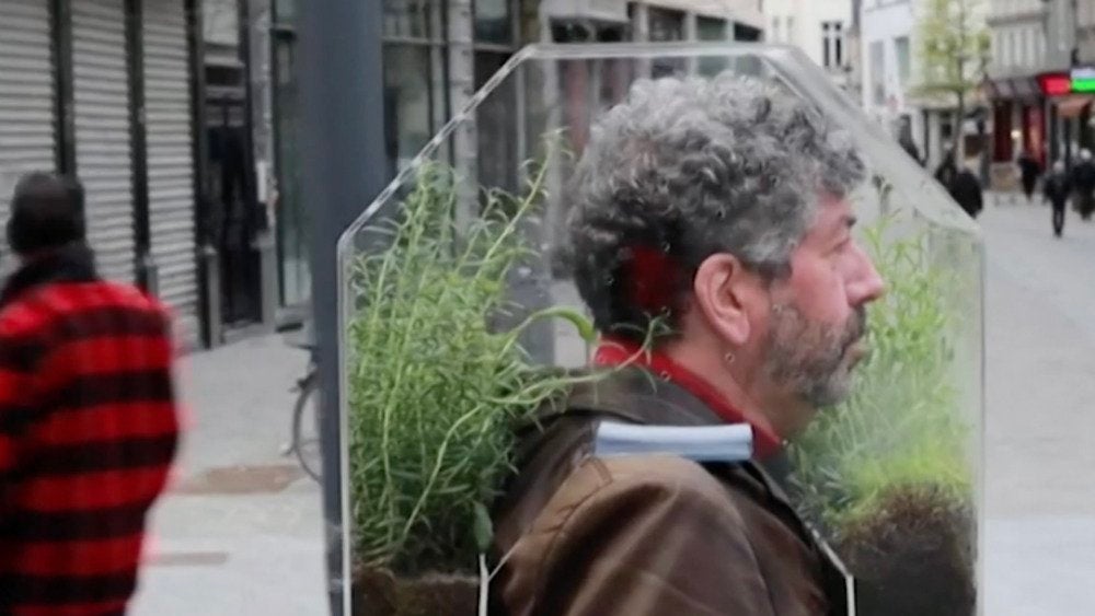 A Belgian man has created a face covering he considers his portable oasis.