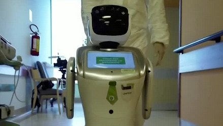 Robots are being used to treat coronavirus patients in hard-hit Italy, where up to one-fifth of health care workers are infected.