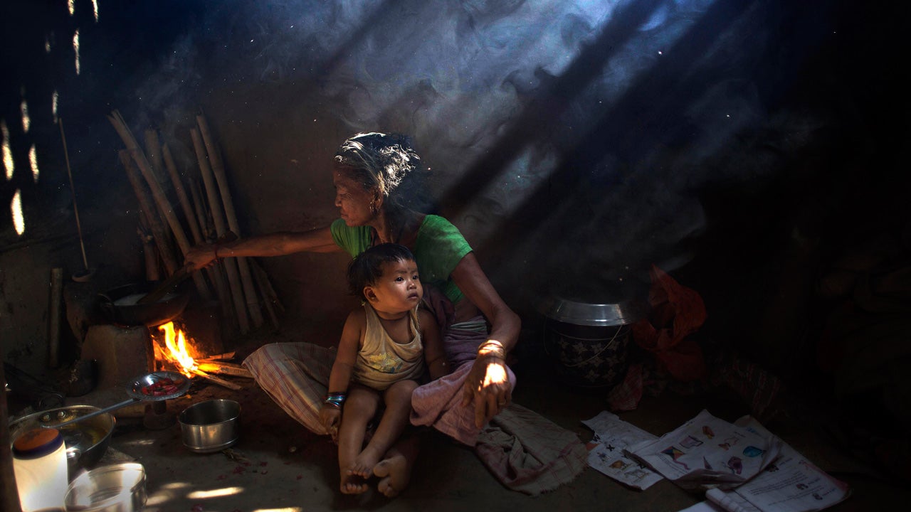 In this Tuesday, March 31, 2015 file photo, an elderly Indian woman cooks using firewood at her home at Gobhali village on the outskirts of Gauhati, India. With sizzling temperatures claiming more than 300 lives this month in India, officials said Friday they were banning daytime cooking in some parts of the drought-stricken country in a bid to prevent accidental fires that have killed nearly 80 more people. (AP Photo/ Anupam Nath, File)