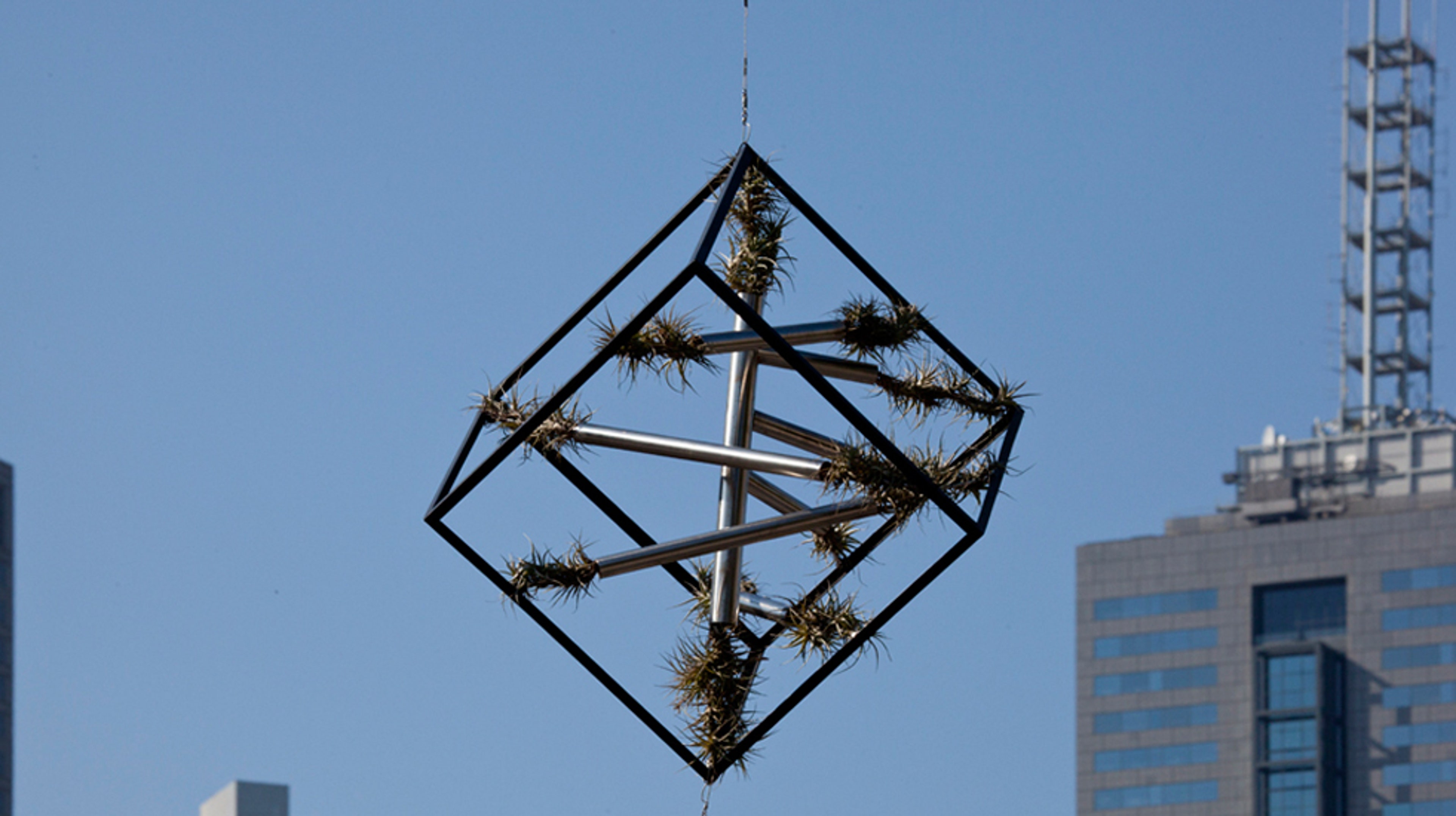 "They survive unsupported. They require no water and nutrient system at all," he says. "They require no replant or maintenance, as the plants used in these air gardens grow slowly and can withstand hot, dry conditions."