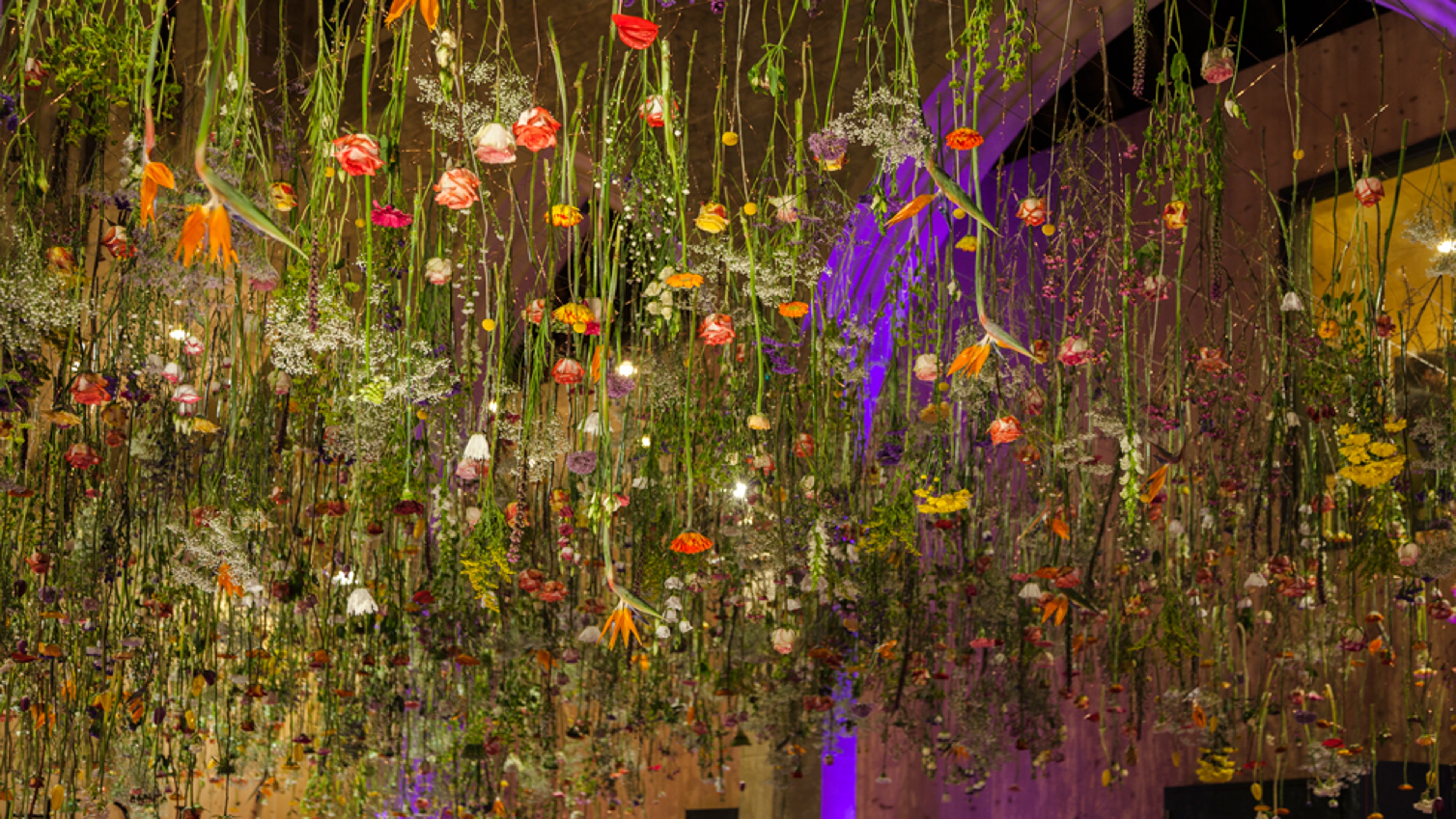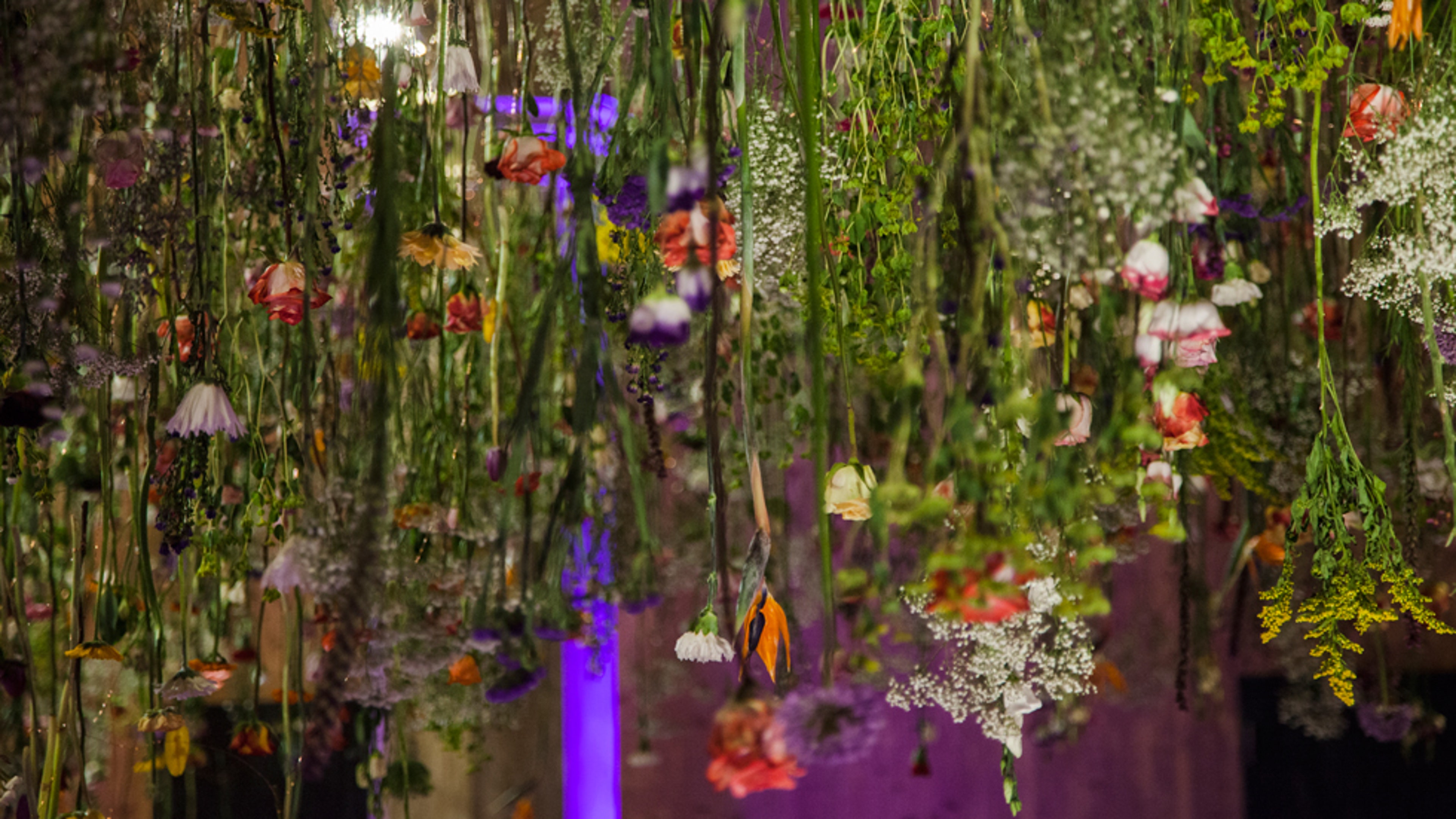 Law's installation, Flower Garden Display'd, features more than 4,600 hanging blooms.