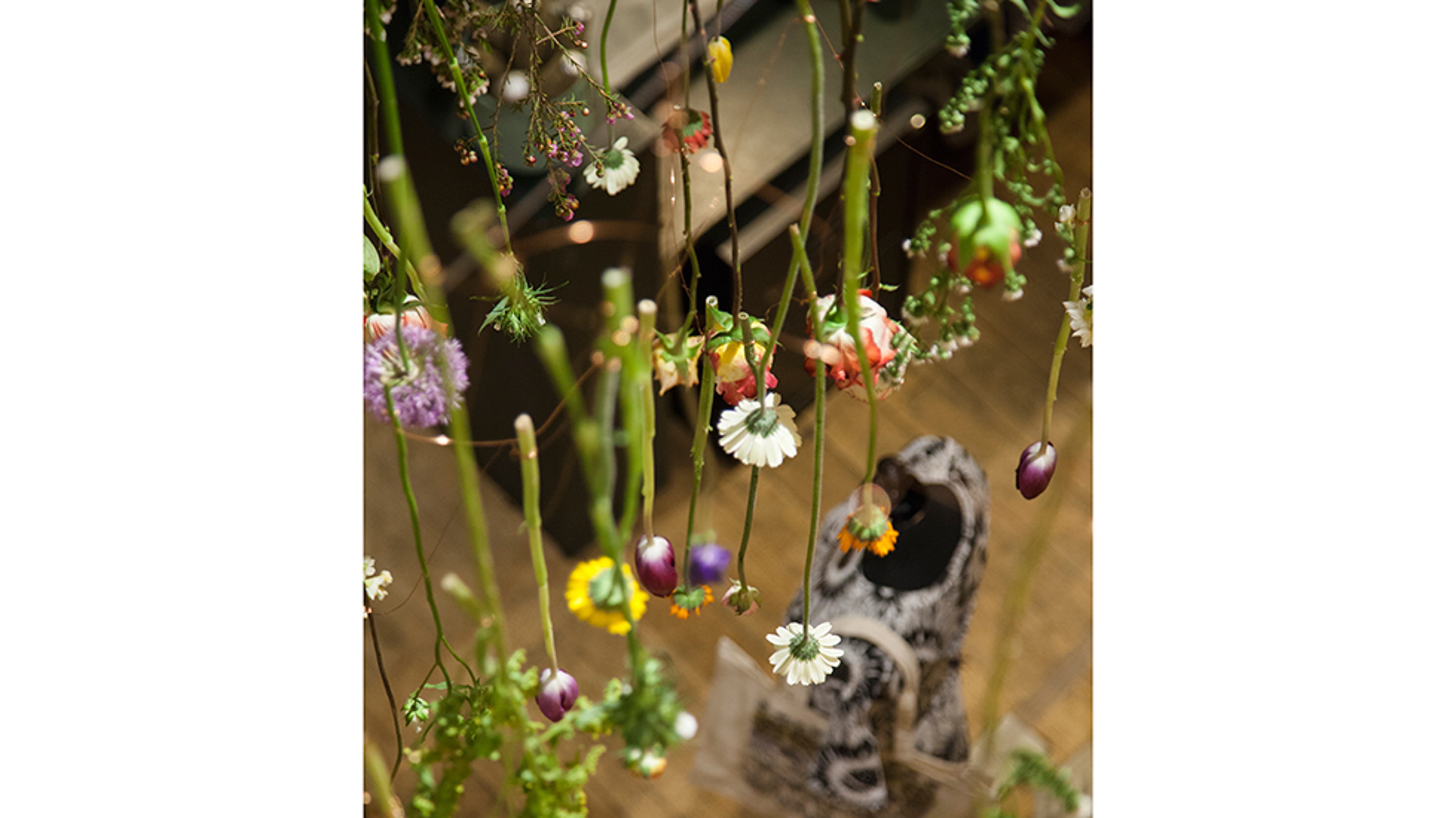 Here, we get a view of the hanging flowers – and the entire scene – from above.