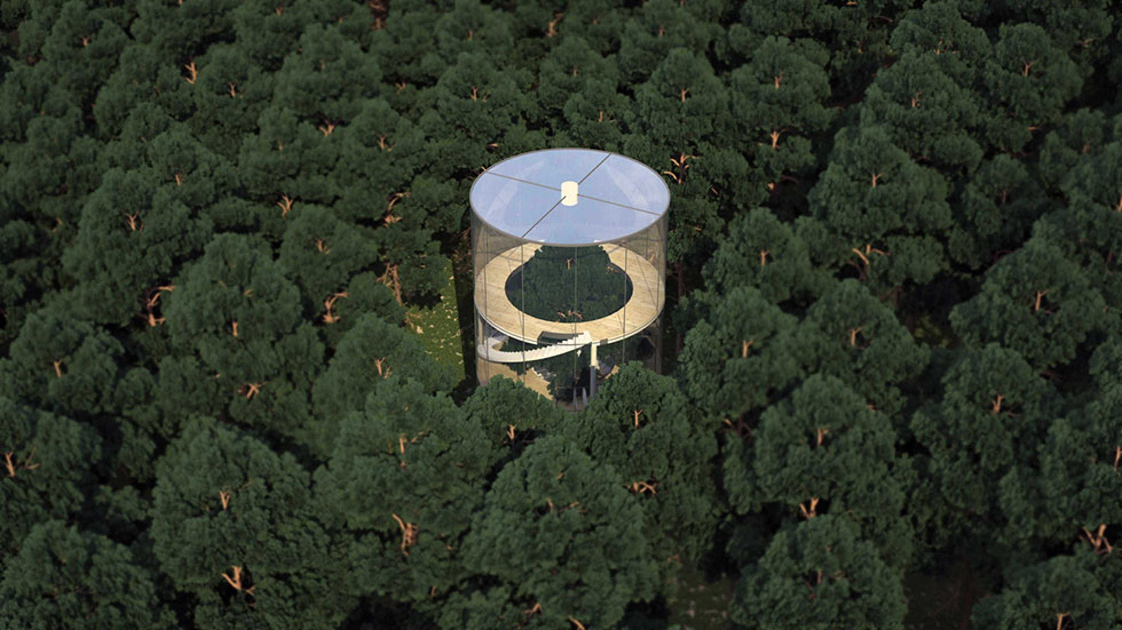 Designer Almasov Aibek says the idea of building a home around one of those towering trees is meant to provide "more fusion with nature."