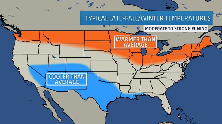 Looking at past moderate-strong El Ninos, here are the upshots for temperatures and precipitation from late fall through winter in the U.S.: