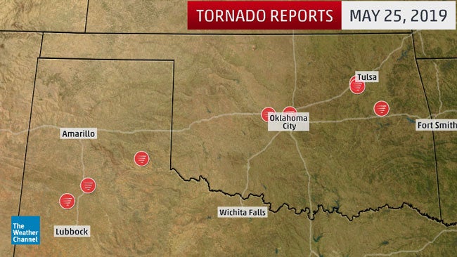 Preliminary tornado reports from May 25 through early morning May 26, 2019. Note: These are simply preliminary reports and do not correspond to actual tornadoes or their exact paths.