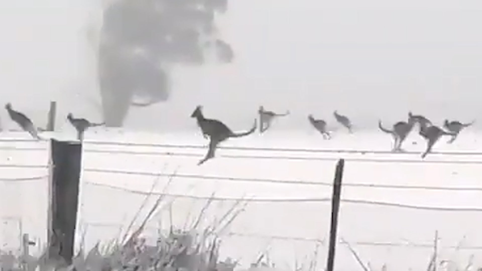 As Australia’s New South Wales was hit by a cold snap that brought wintry conditions, a large mob of kangaroos was spotted frolicking in the snow across a rural field.