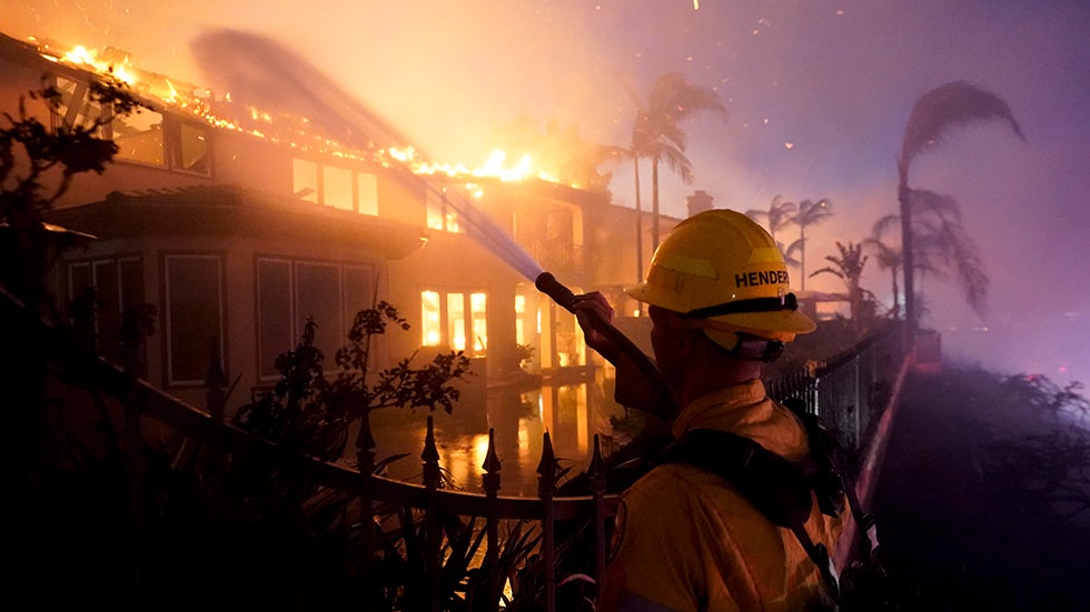 The Coastal Fire was fanned by gusty winds and drought conditions as it destroyed homes in a gated community in Laguna Niguel, California.