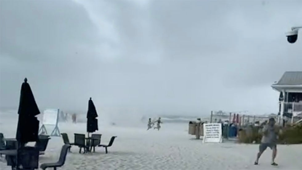The twirling cloud of water and sand rushed onshore at Fort Myers Beach, sending tourists running.