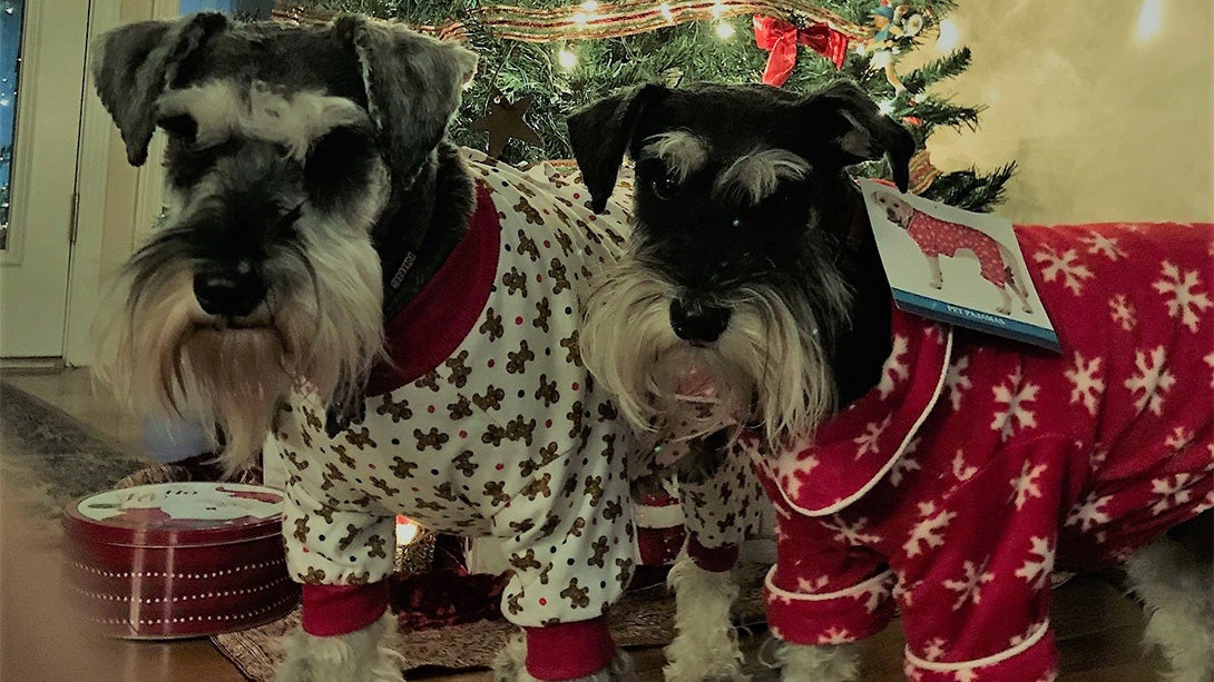 Cooper and Connor are 8 year old miniature Schnauzers from Hilton Head, South Carolina. “The Salt and pepper one opens doors, cabinets, etc, and the black and silver comes and tells on him. They love the Ocean and beach and surfing.”
