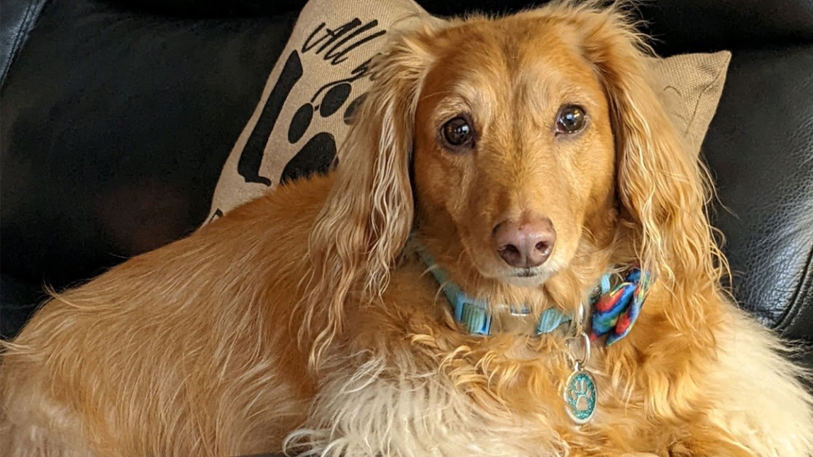 Jesse, 6, is a standard long-haired dachshund who lives in Newnan, Georgia. “He loves the sunshine and his favorite thing to do is sit outside on the grass carpet section of our back yard. Typical of the breed, he doesn't like rain very much but loves to drink rain water and wade through the puddles. His nickname is Jesse Pooh.”