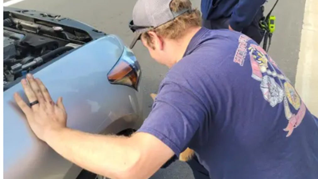 First Responders Save Tiny Kitten Stuck In Car Wheel Well