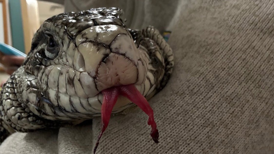 A small portion of the tegu’s tongue was amputated to help with its recovery.