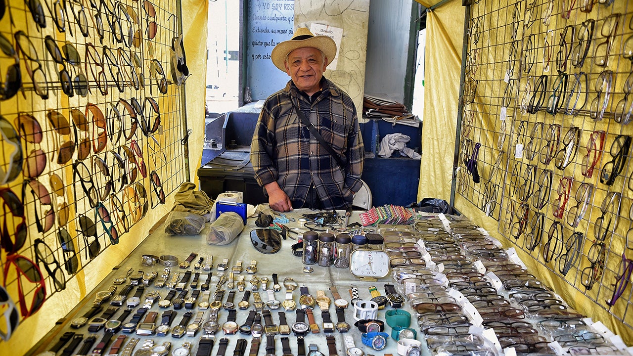 Mexican Andres Sanchez, a watchmaker by trade for 35 years, poses for a photography at the Pantitlan neighborhood, in Mexico City. (ALFREDO ESTRELLA/AFP/Getty Images)