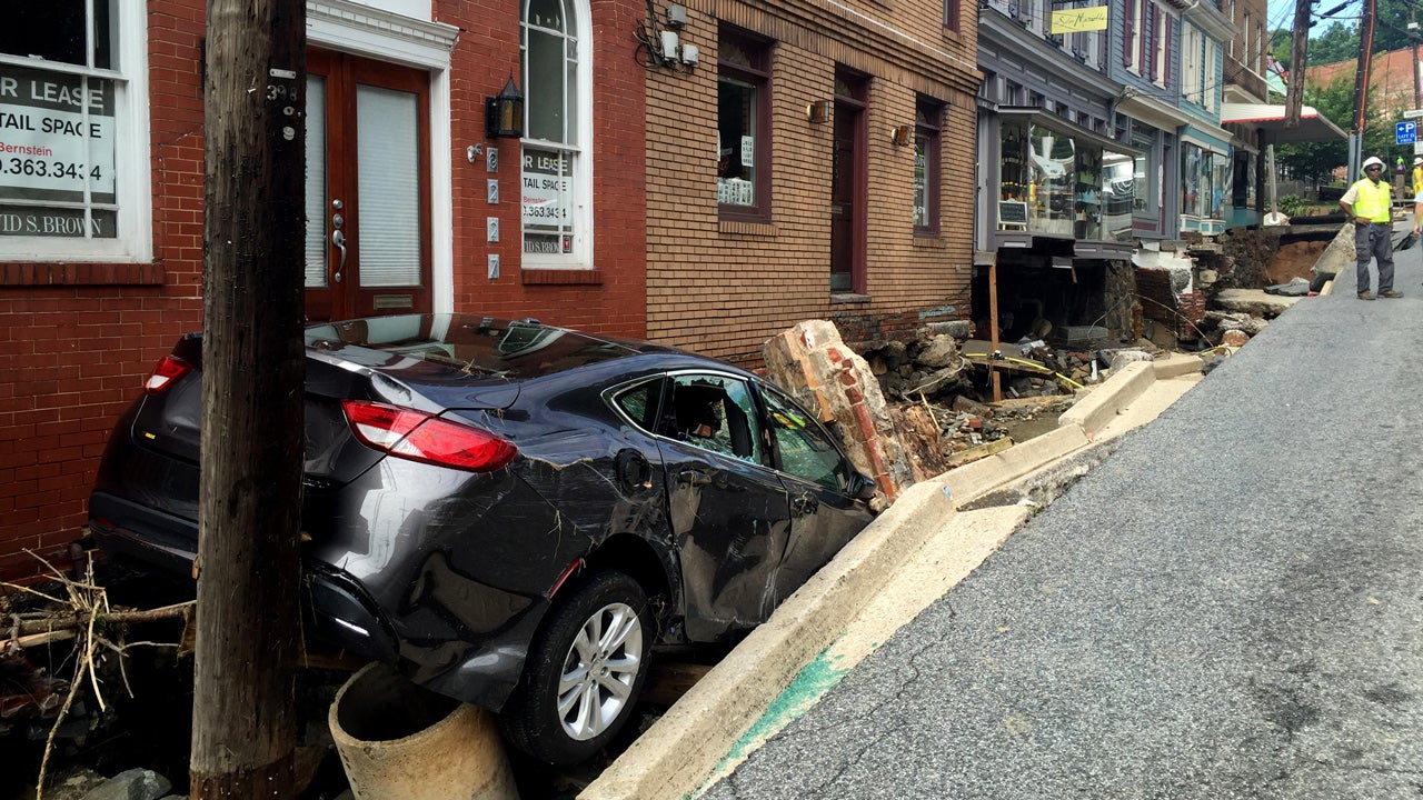 Flood damage that occurred in Ellicott City, Maryland, during the last weekend in July 2016. (Kevin Rector/The Baltimore Sun via AP)