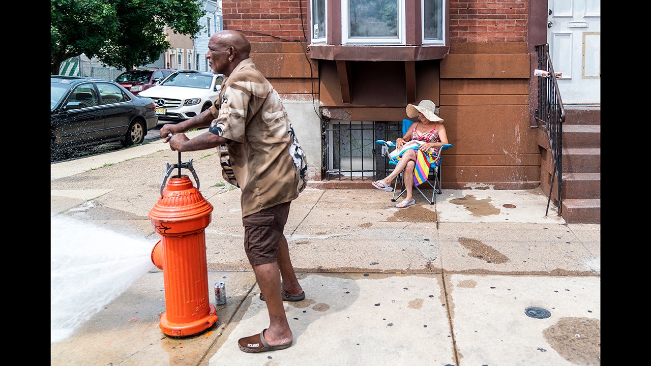 Eduardo Velev opens a fire hydrant during a heatwave on July 1, 2018 in Philadelphia, Pennsylvania.