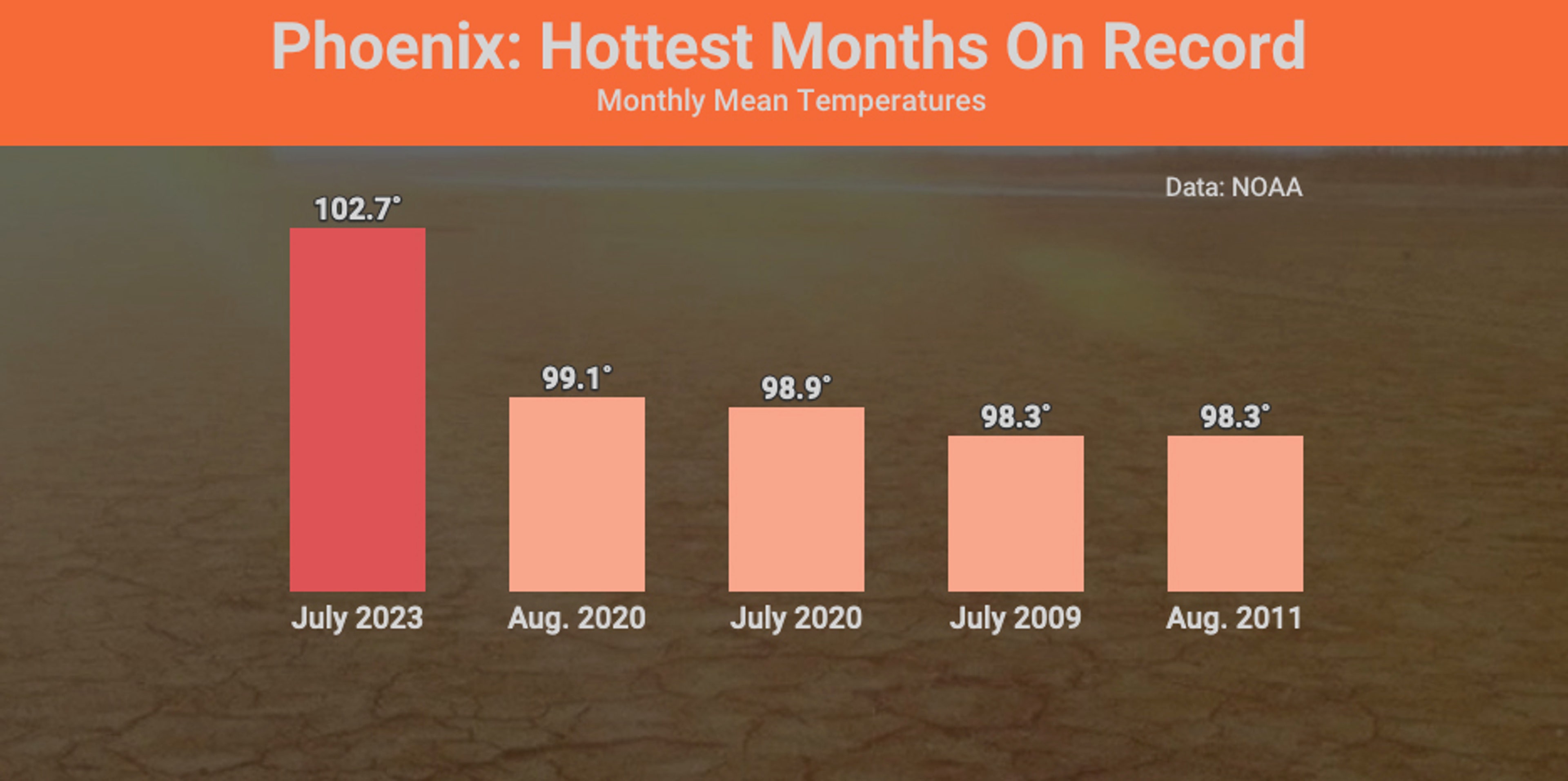 The monthly mean temperature in July in Phoenix of 102.7 degrees was the hottest for any town or city with a year-round population of 1,000 or more anywhere in North America, according to weather.com weather historian Christopher Burt.