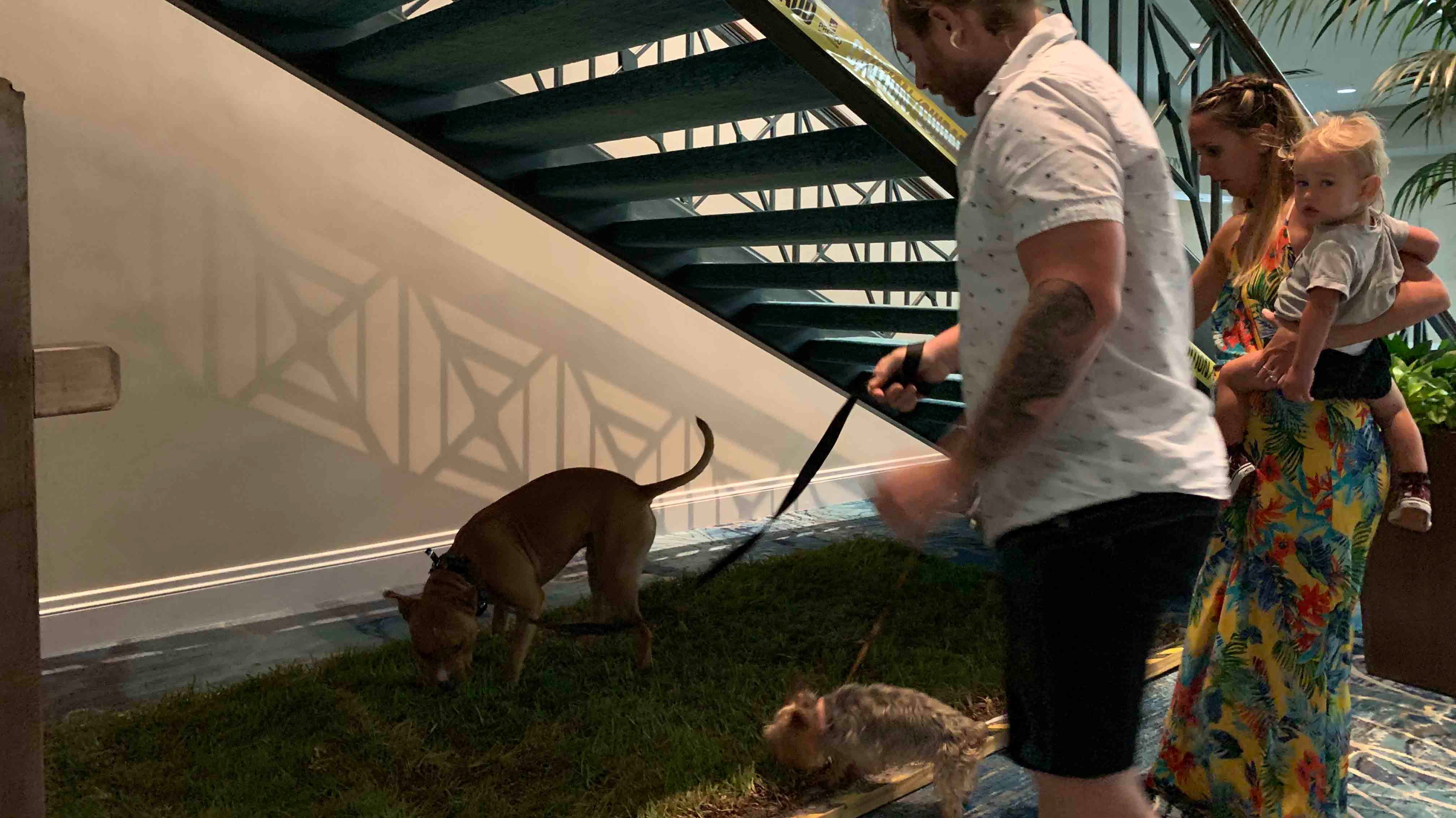 Jonathan Proferes and Allexis Petrelli at the Rosen Plaza Hotel in Orlando on Sept. 3, 2019. They evacuated from their home in Cocoa Beach, Florida, with their son Dominic and dogs Jersey and Jack. The hotel waived pet fees and rules, and offered special rates to those who decided to leave ahead of potential impacts from Hurricane Dorian.