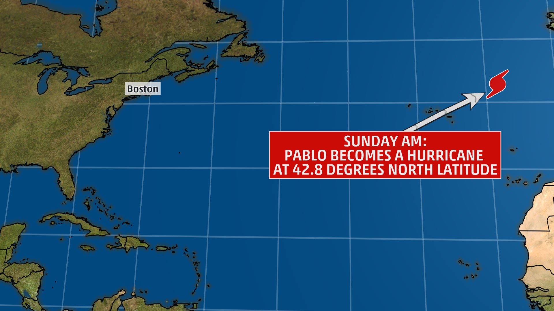 Pablo strengthened into a hurricane at 11 a.m. EDT on Oct. 27 at 42.8 degrees north latitude. That's near the same latitude as Boston on the U.S. East Coast.
