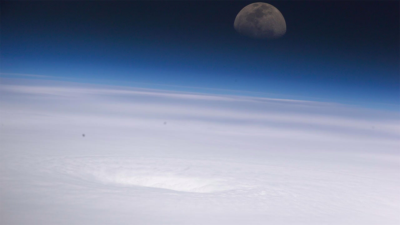 The eye of Hurricane Emily in the Caribbean Sea as seen from the International Space Station on July 17, 2005.