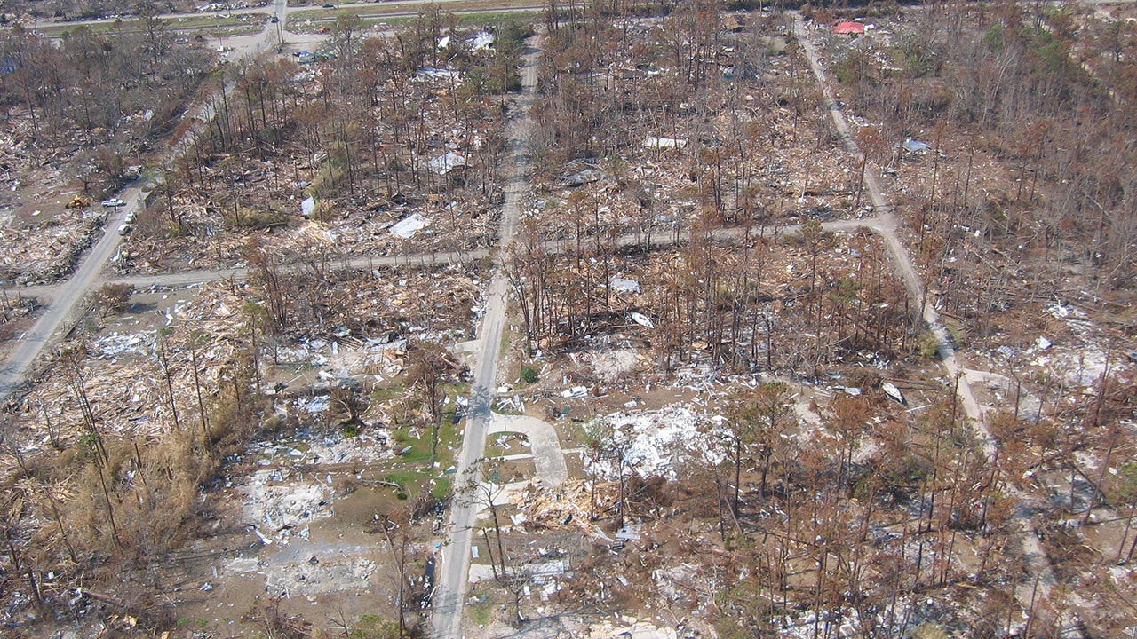 Complete devastation from Hurricane Katrina's storm surge in Waveland, Mississippi. (Credit: NOAA)
