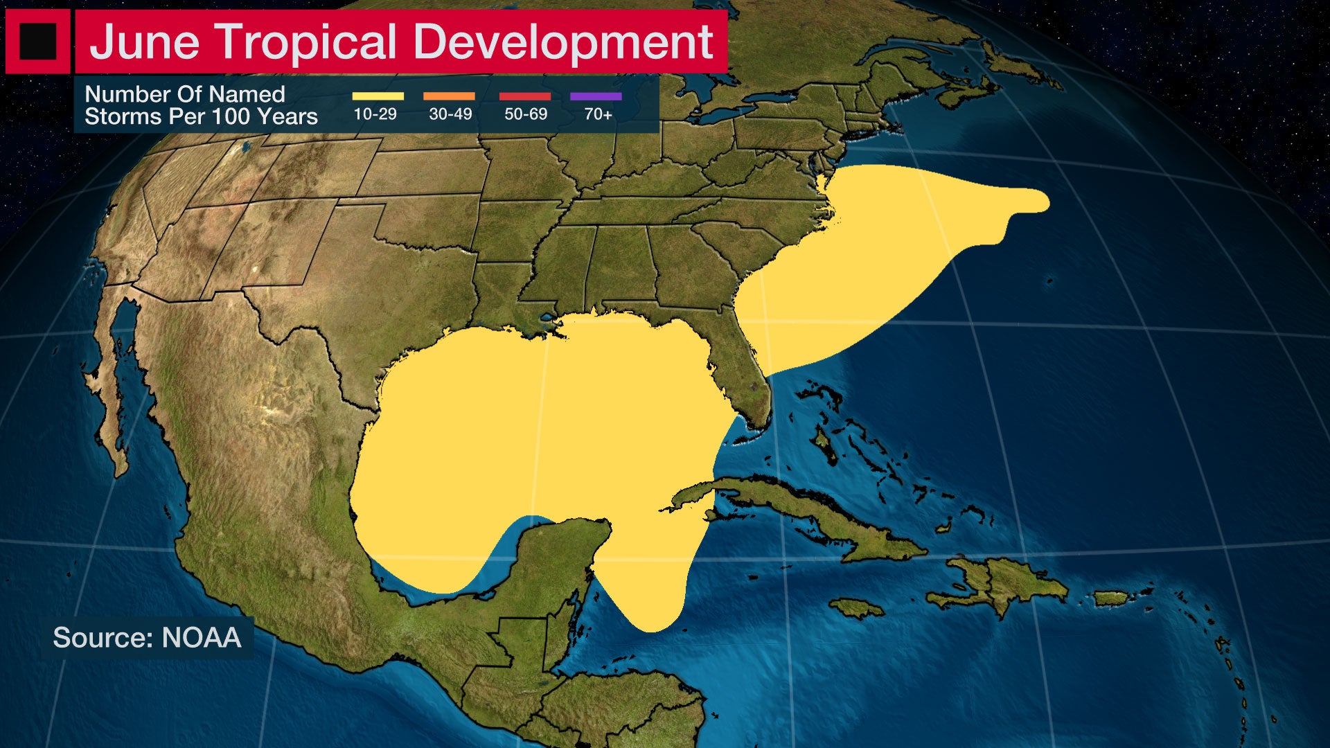 Early in the season, tropical systems tend to form close to the U.S. and often affect the southeastern U.S., the western Caribbean and parts of Central America. Rainfall, rather than wind, is usually the biggest concern with June tropical cyclones.