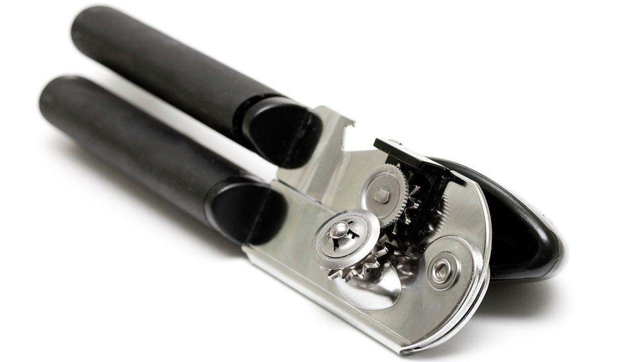 Since canned foods don't need refrigeration, they're often a go-to for food in emergency situations. Don't be caught without a means to open them — be equipped with a hand crank can opener (you'll be glad you packed it when the electricity goes out on your electric can opener).