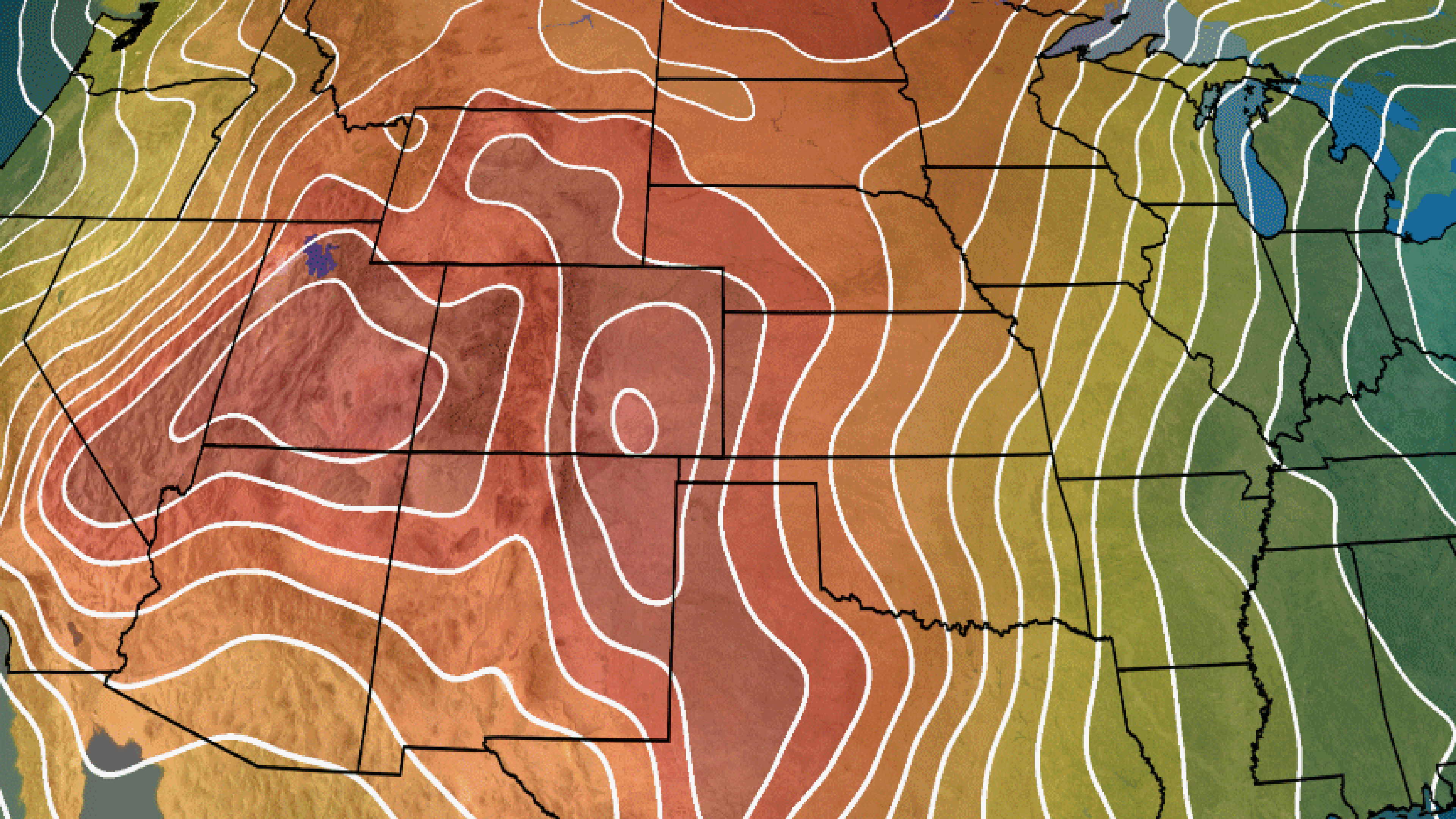 You can also see the pressure drop in the animation below, which has an increasing number of isobars in the central Plains from late Tuesday night into Wednesday morning. Isobars are lines of constant pressure near the Earth's surface.
