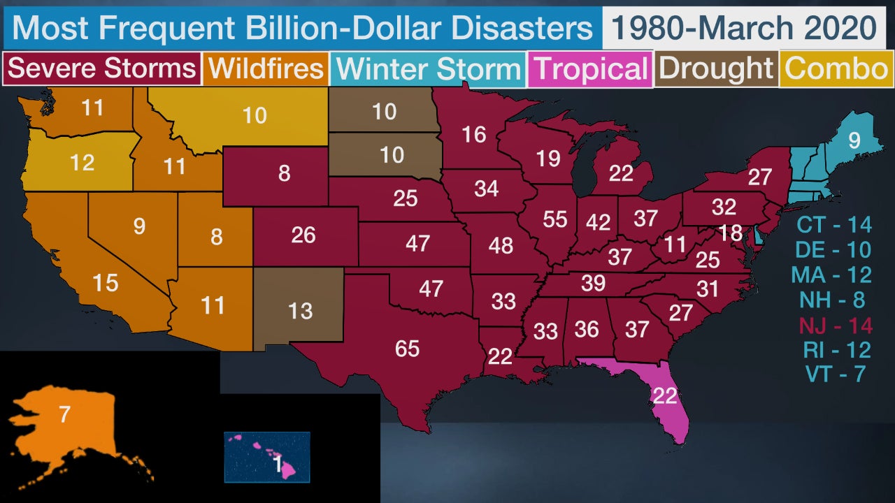 Here's Which Type of Billion-Dollar Weather Disaster Has Occurred Most Frequently in Each State Since 1980 | Weather.com