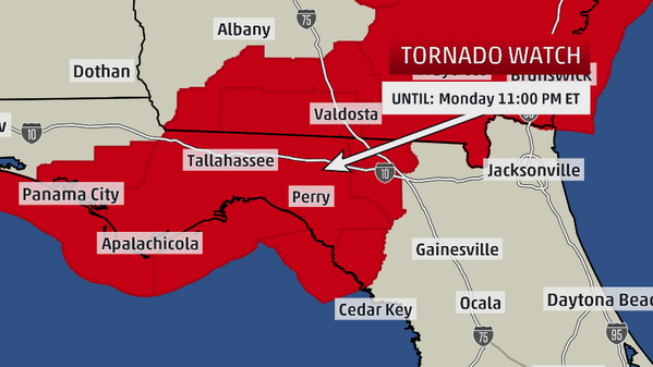 The tornado watch outlines an area where an organized threat of severe thunderstorms capable of producing tornadoes are expected generally during a three- to six-hour period. Tornado watches are issued by the Storm Prediction Center after consultation with local National Weather Service offices, and the watch areas can span several counties to several states.