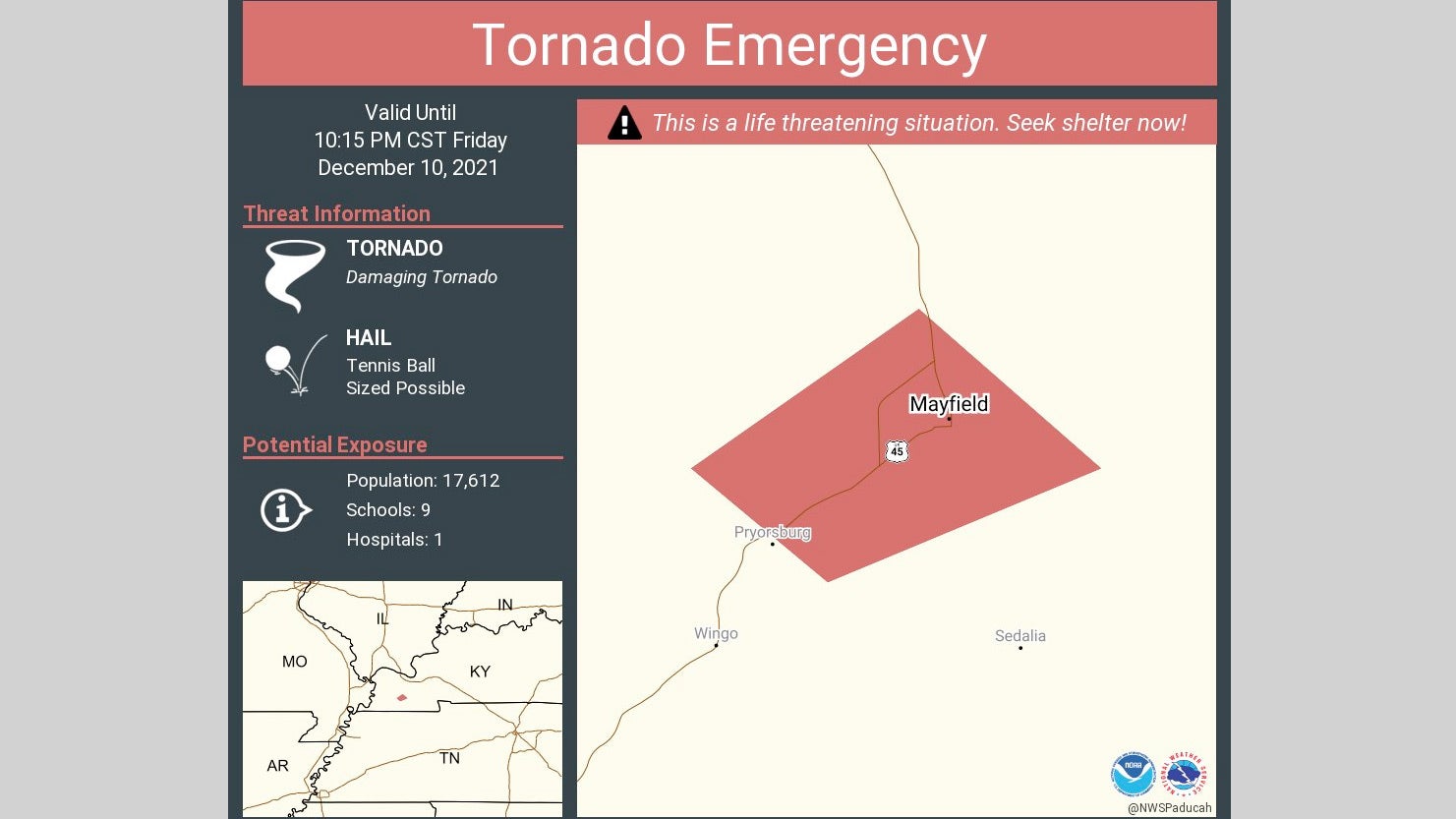Example of a tornado emergency issued for an EF4 twister that hit Mayfield, Kentucky, in December 2021.