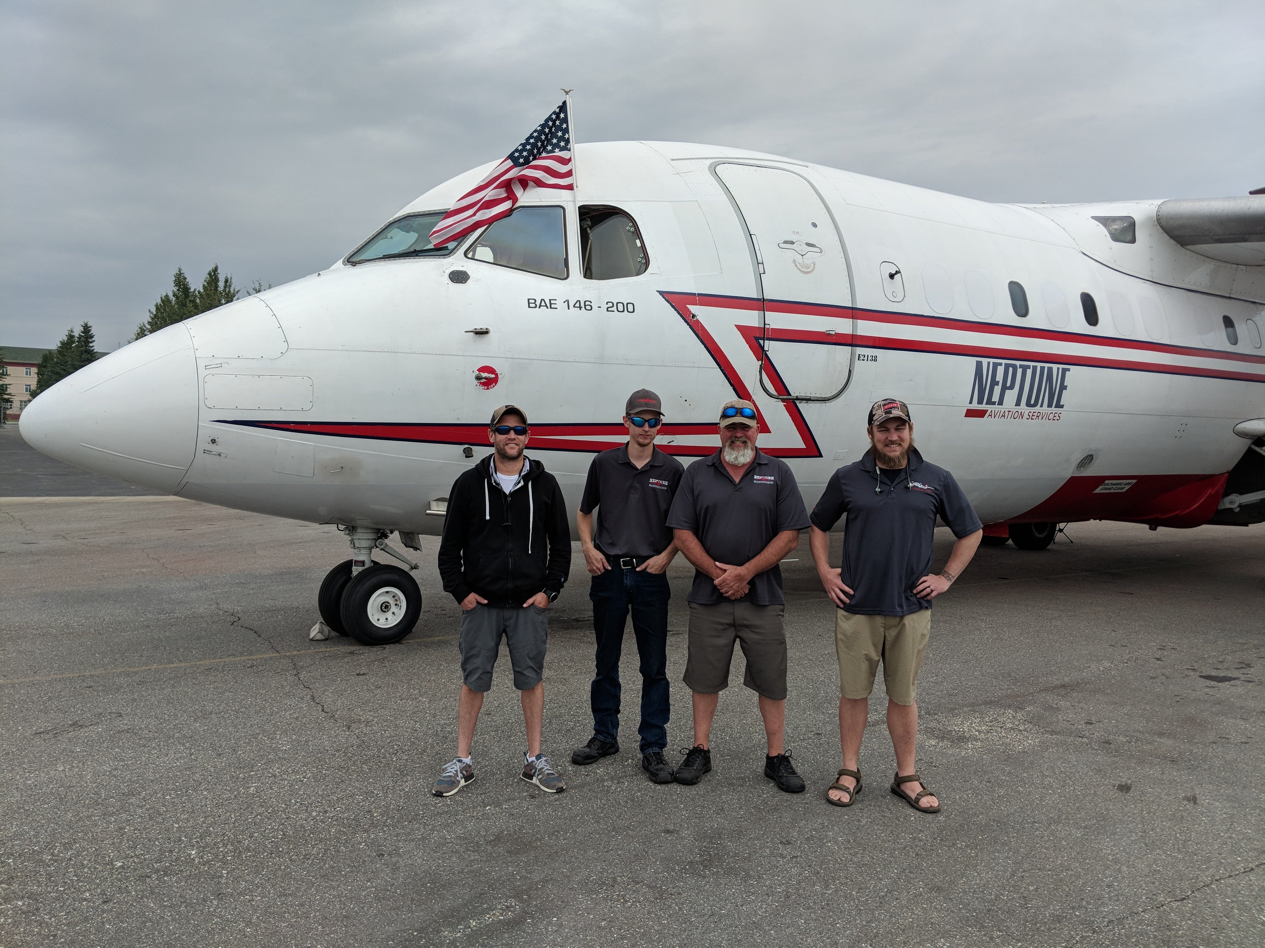 Getting a feel for aerial firefighting also involves getting comfortable with the equipment you're flying. At first, Baer flew a P-2, which is an old radial Navy patrol bomber circa 1946 that had been retrofitted to drop flame retardant. He flew that for three years before he was moved over to the new retrofitted jets which are BAe 146s, retired 70-seat British Airways jets. And since they burn jet fuel, they're a lot faster.