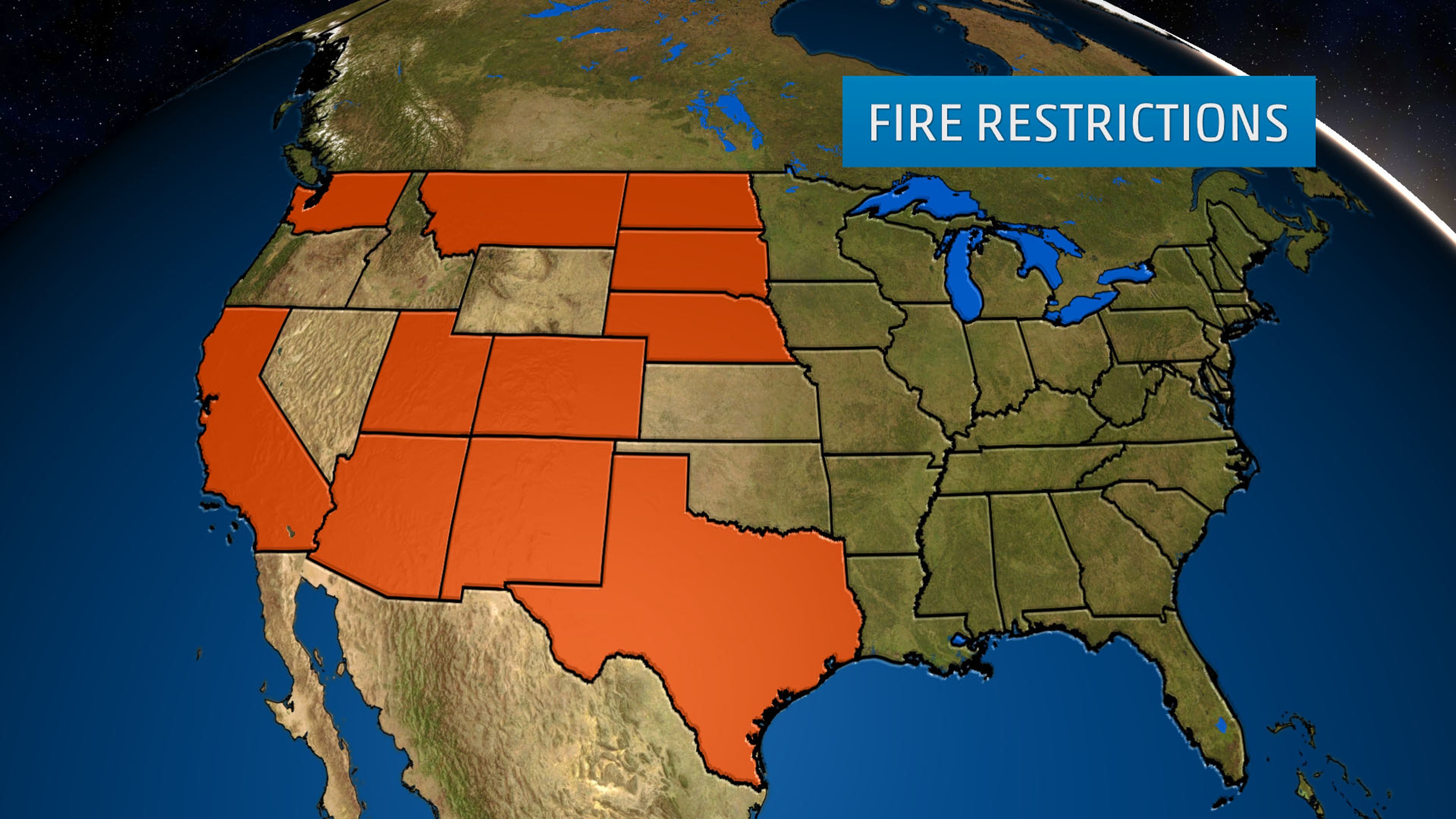 In addition to where you are not legally allowed to light off fireworks or other types of fires, dry, hot and windy weather in parts of the High Plains, Great Basin and Southwest will make the chance of fire starts high.