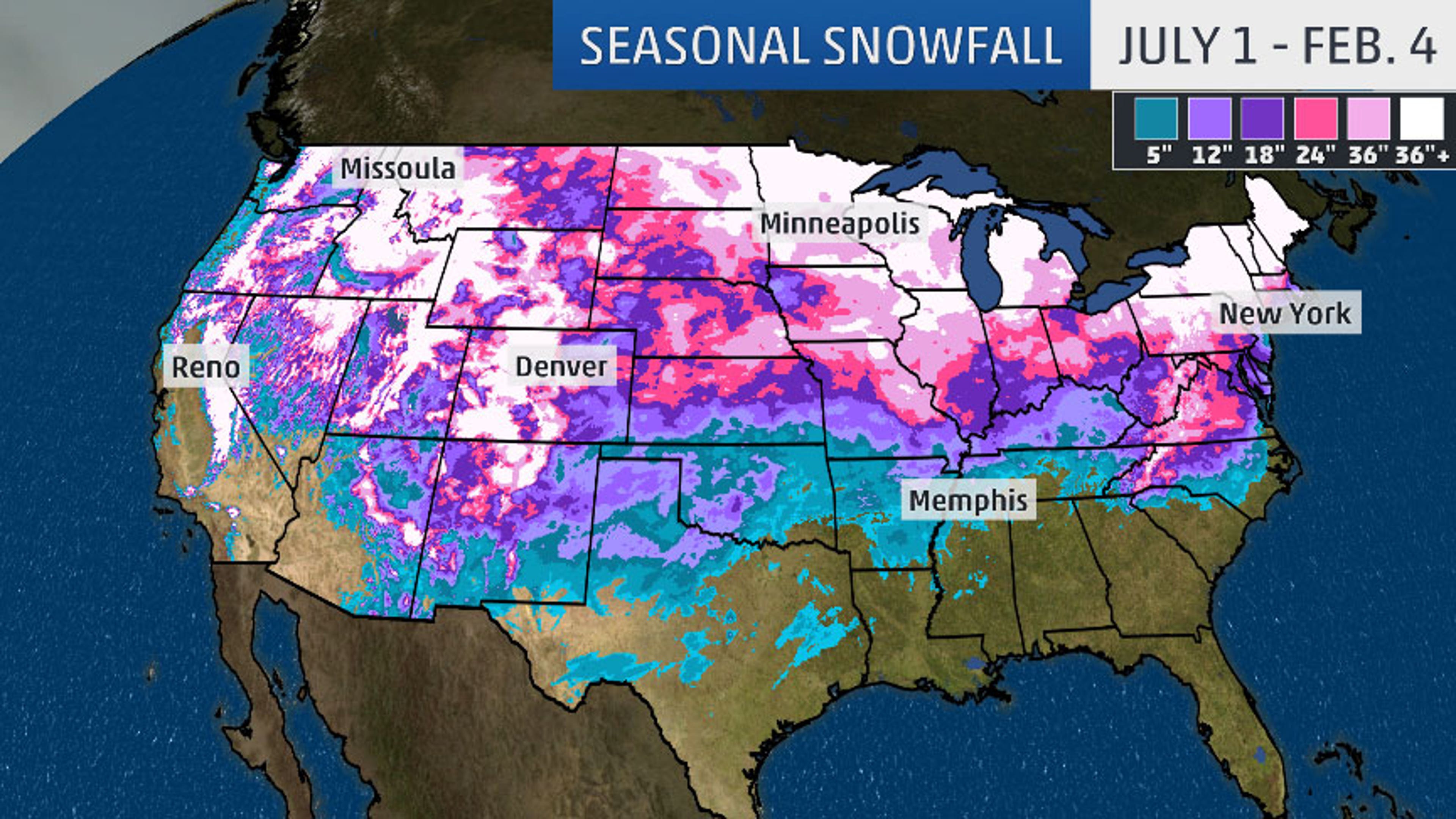 Snowfall from July 1, 2018 through Feb. 4, 2019.