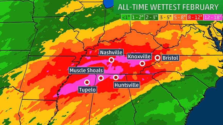 Bristol and Knoxville also had a record soaking in February in the Volunteer State.