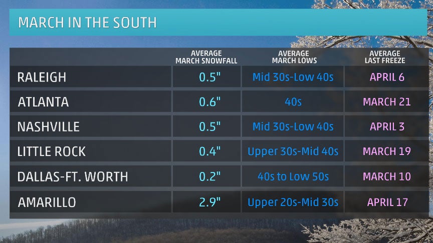 As previously mentioned, it can snow in the South in March, but usually not every year.