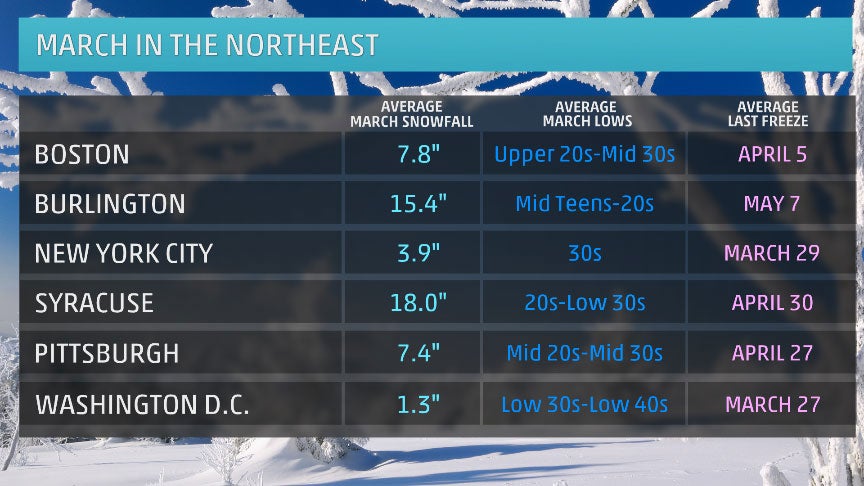 The exception is Boston, where nor'easters can pummel southern New England with March snow.