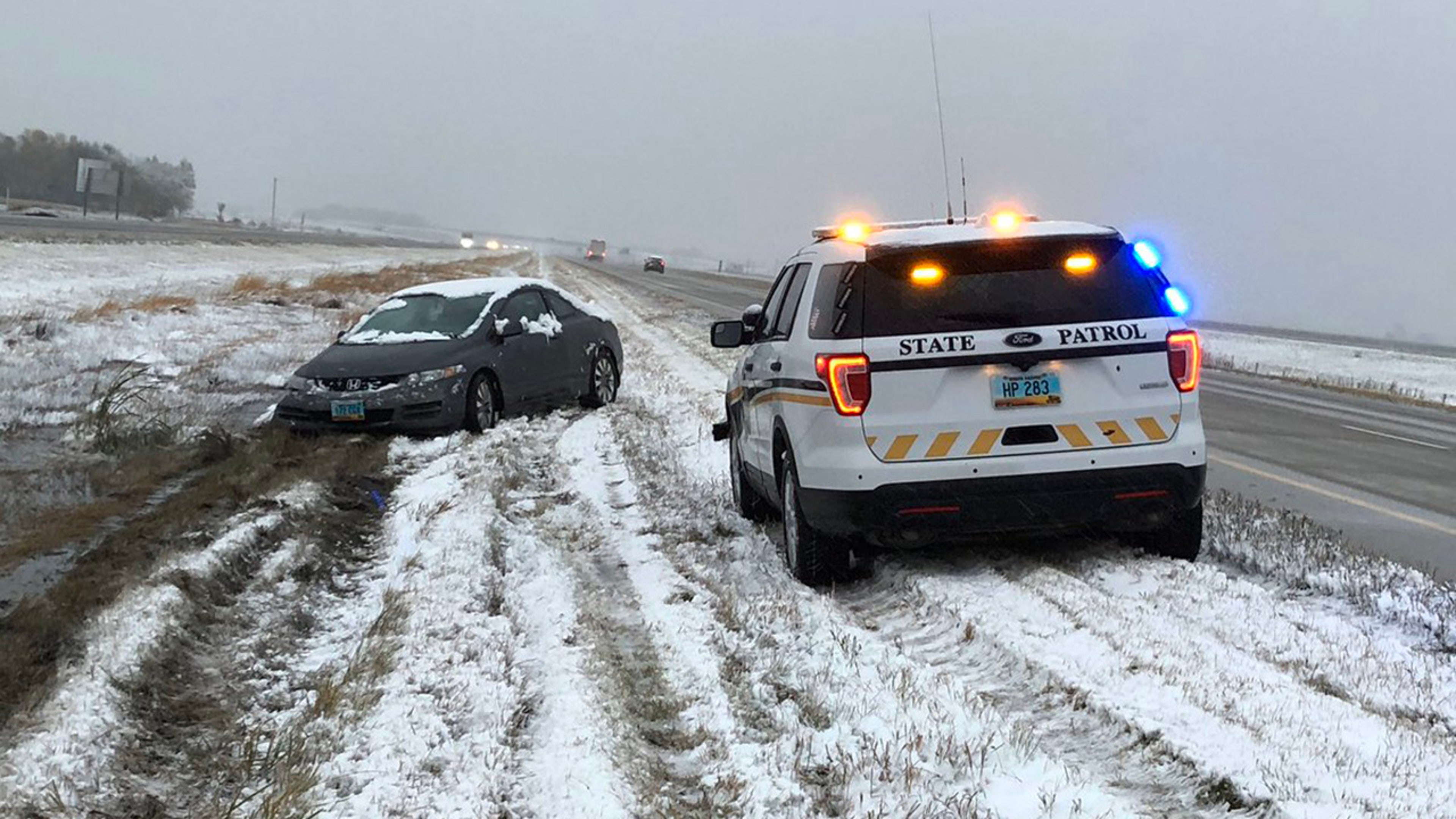 North Dakota Highway Patrol advised drivers not to travel during a snowstorm Friday morning due to icy and slushy roads. (Twitter/@NDHighwayPatrol)
