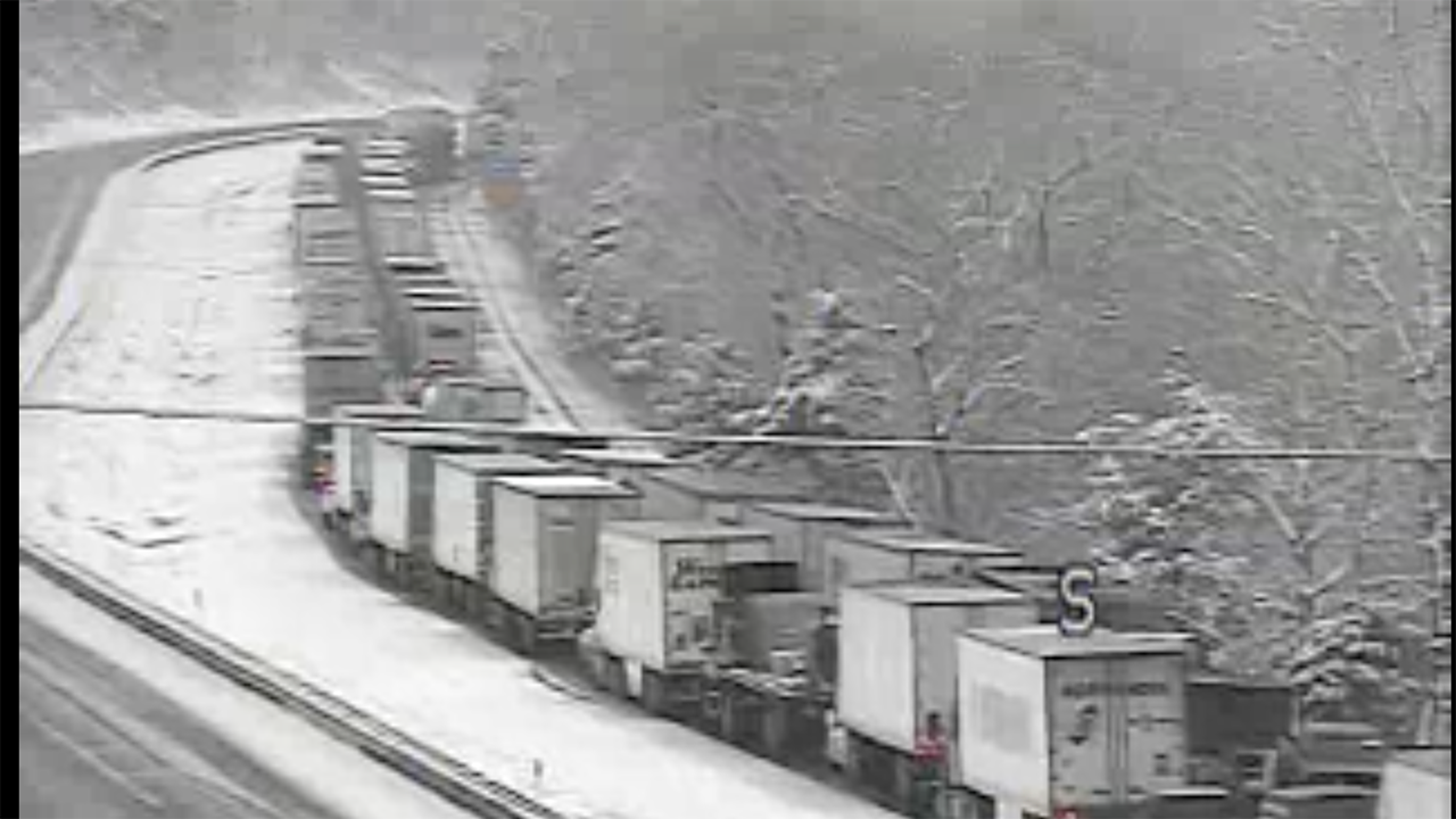 A tractor-trailer accident on Interstate 81 backed up traffic in Botetourt County in Virginia on Tuesday, January 7, 2020.