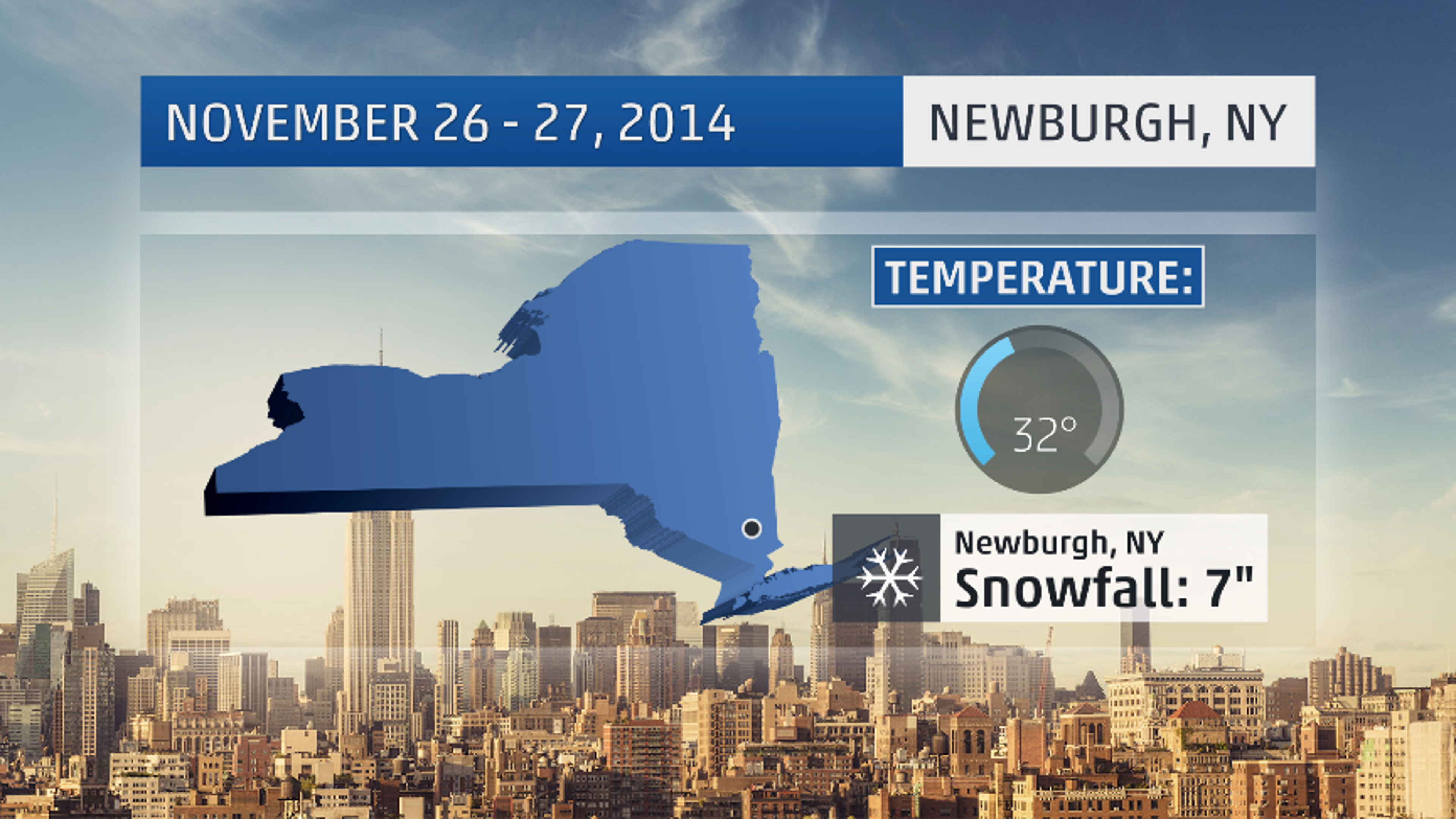 "Temperatures were cold in Newburgh late Wednesday into early morning Thursday," said weather.com meteorologist Chrissy Warrilow. "Due to Winter Storm Cato, thermometers hovered between 28° and 32° during that time period, allowing as much as 7 inches of snow to accumulate."