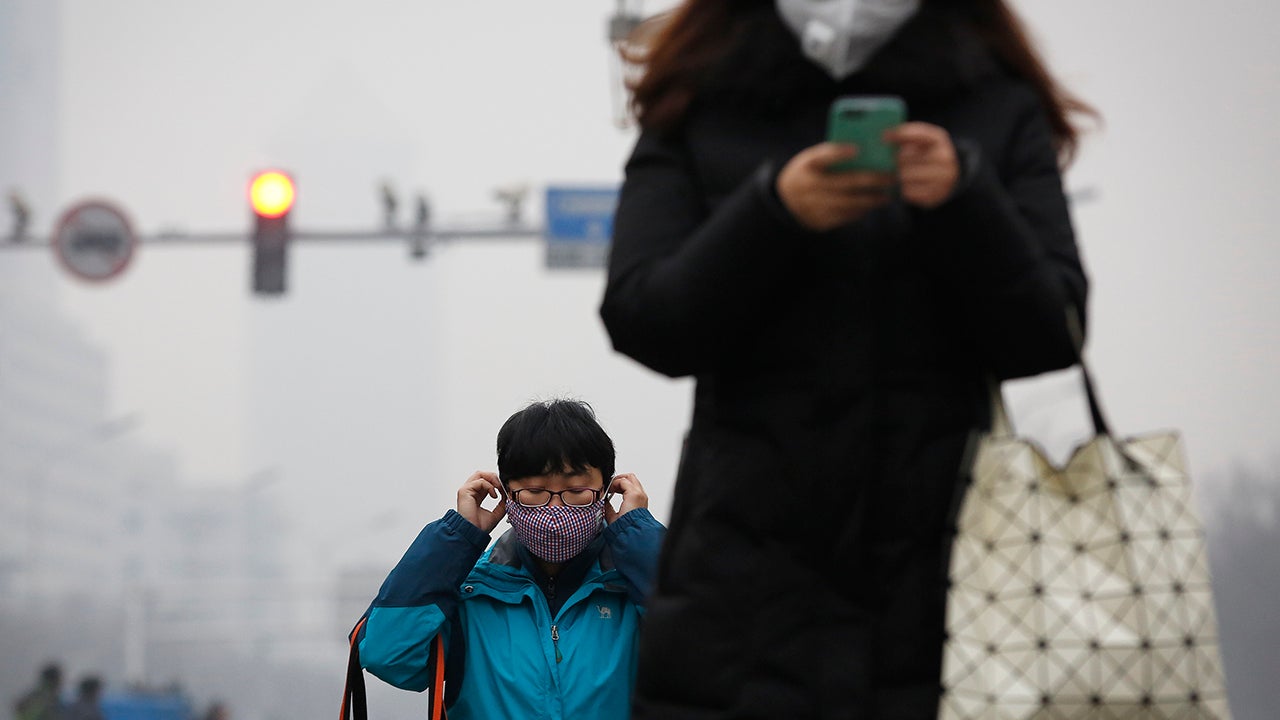 A woman wears a protection mask as she walks along a street on a polluted day in Beijing, Tuesday, Dec. 8, 2015. Schools closed and rush-hour roads were much quieter than normal as Beijing’s first-ever red alert for smog took effect Tuesday, closing many factories and invoking restrictions to keep half the city’s vehicles off the roads. (AP Photo/Andy Wong)
