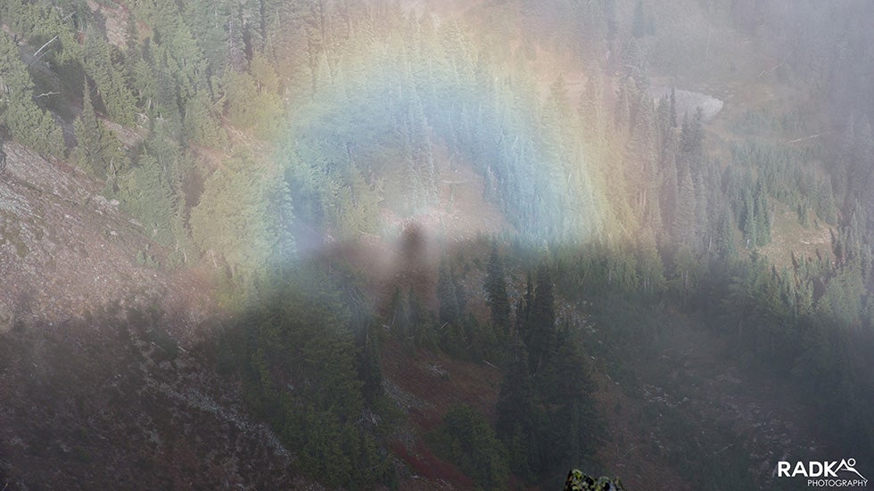 With clouds rolling in and visibility decreasing, Radka Chapin and her fellow hikers decided it was time to end their excursion on the Tamanos Mountain in Washington's Mount Rainier National Park. They were on their way down from the summit when they came across something that stopped them in their tracks: A rare optical illusion known as the Brocken spectre.