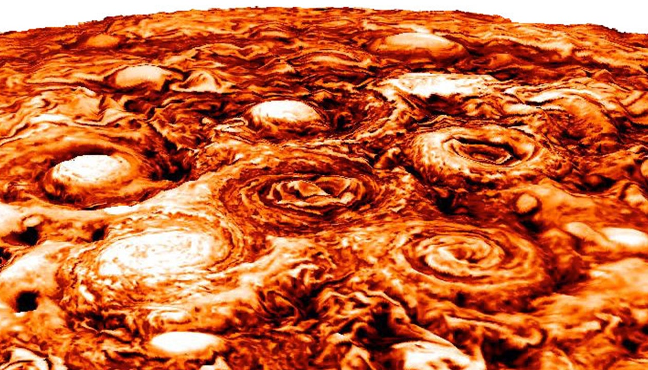 Jupiter's Otherworldly Weather Revealed: Massive Cyclones on Planet Pack Winds Exceeding Category 5 Hurricanes | Weather.com