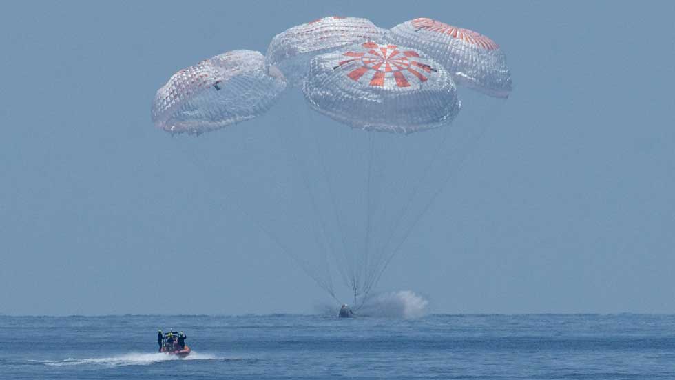 SpaceX Dragon Crew Capsule Splashes Down off Pensacola, Florida, After Two-Month Mission to Space Station