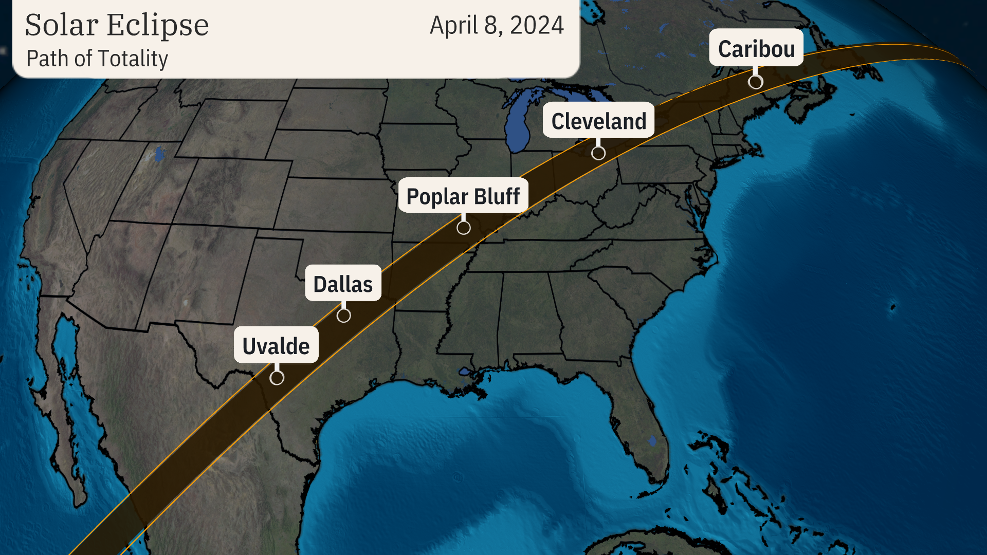 The path of a​ total solar eclipse will cross parts of Mexico, 15 U.S. states and a piece of Canada on April 8.