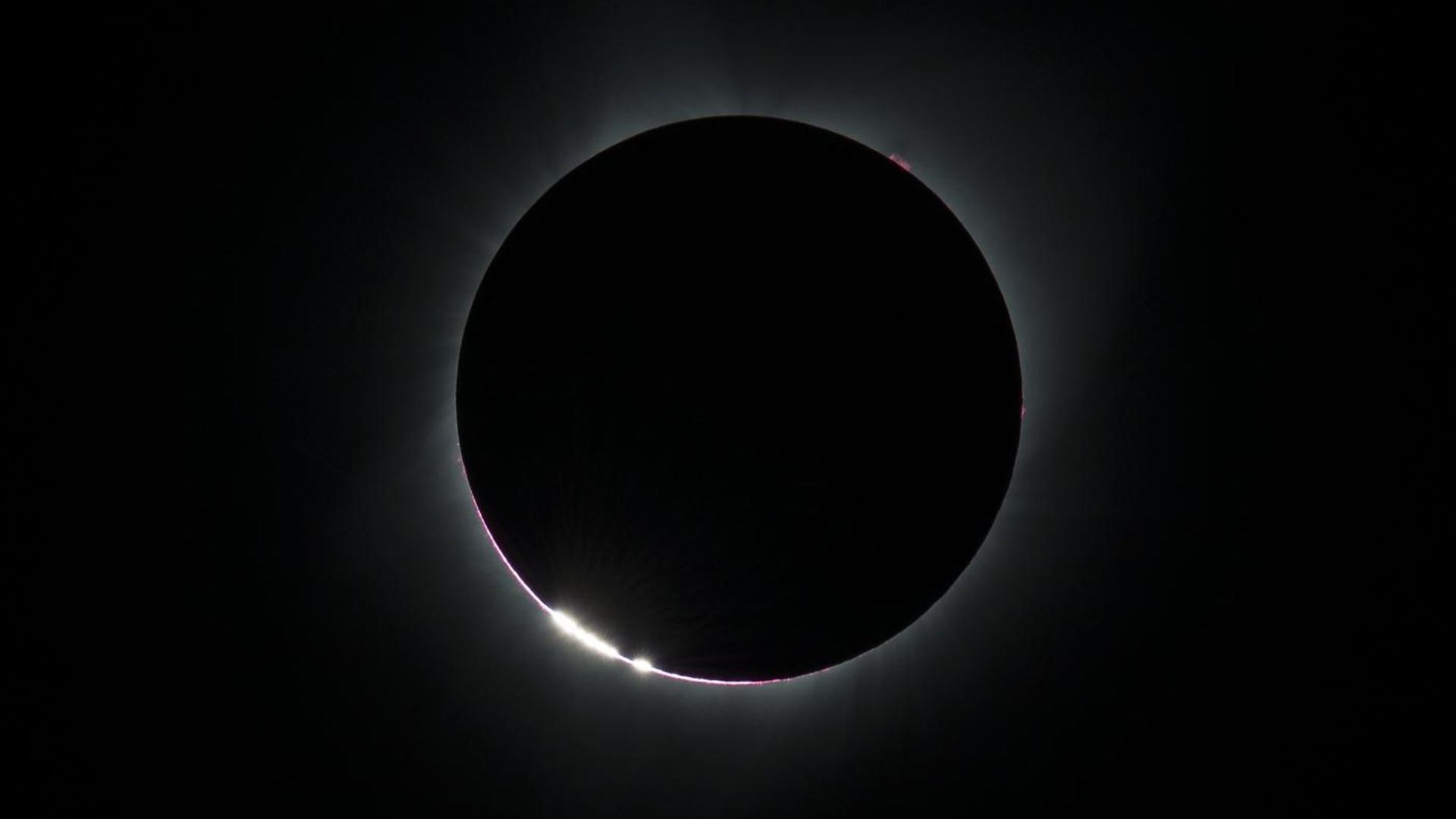 Leading up to totality, as the Moon continues its movement across the sun, a phenomenon known as Baily’s Beads makes an appearance. This spectacle occurs when the sun’s light peeks through the topography of the Moon — its rugged valleys. This creates a string of bright spots around the Moon’s silhouette. The phenomenon is fleeting yet fascinating.
