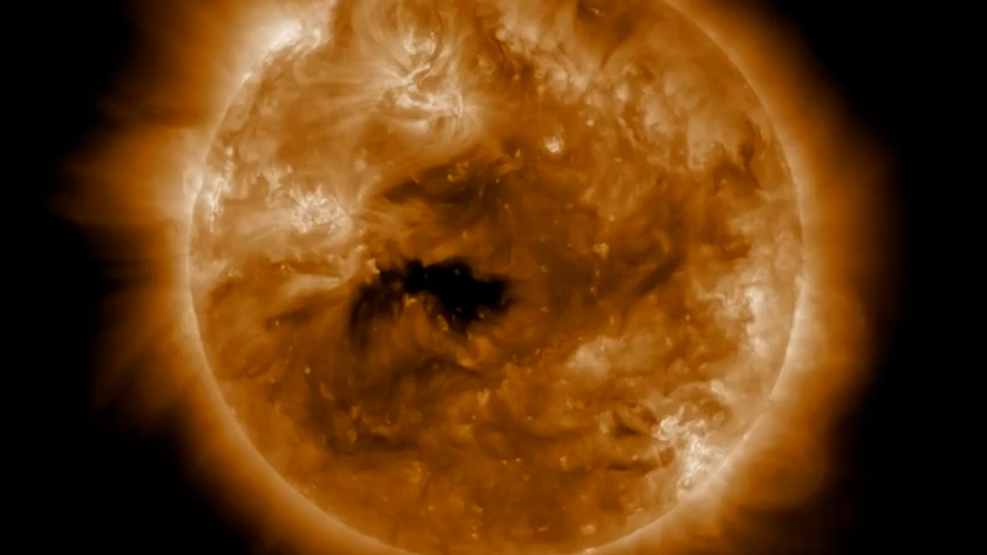 A coronal hole in the sun is sending powerful radiation directly towards Earth, which could spark geomagnetic storms this week.